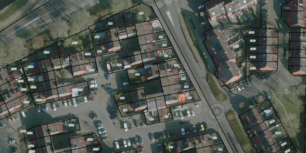 Het perceel waarop de Eik 18 staat heeft een oppervlakte van 206 m². Dit is een middelgroot perceel. De perceeloppervlakte wordt geregistreerd door het Kadaster. Gedetailleerde informatie over de maten van dit perceel kunt u vinden in het rapport Kadastrale kaart met maatvoering van de Eik 18.