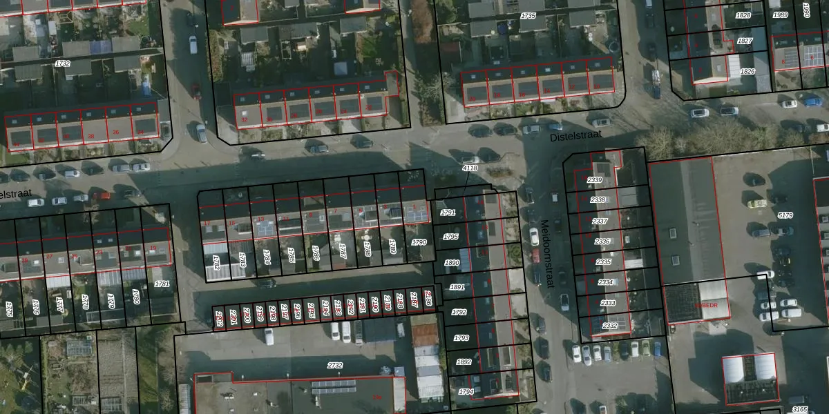 Het perceel waarop Distelstraat 1 staat heeft een oppervlakte van 150 m². Dit is een middelgroot perceel. De perceeloppervlakte wordt geregistreerd door het Kadaster. Gedetailleerde informatie over de maten van dit perceel kunt u vinden in het rapport Kadastrale kaart met maatvoering van Distelstraat 1.
