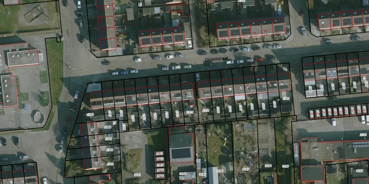 Distelstraat 35 is gelegen op kadastraal perceel HLV01C1773. Deze kadastrale aanduiding is uniek en wordt gebruikt door het Kadaster om eigendomsrechten en andere zakelijke rechten vast te leggen. Het perceel maakt onderdeel uit van de kadastrale gemeente Hellevoetsluis.