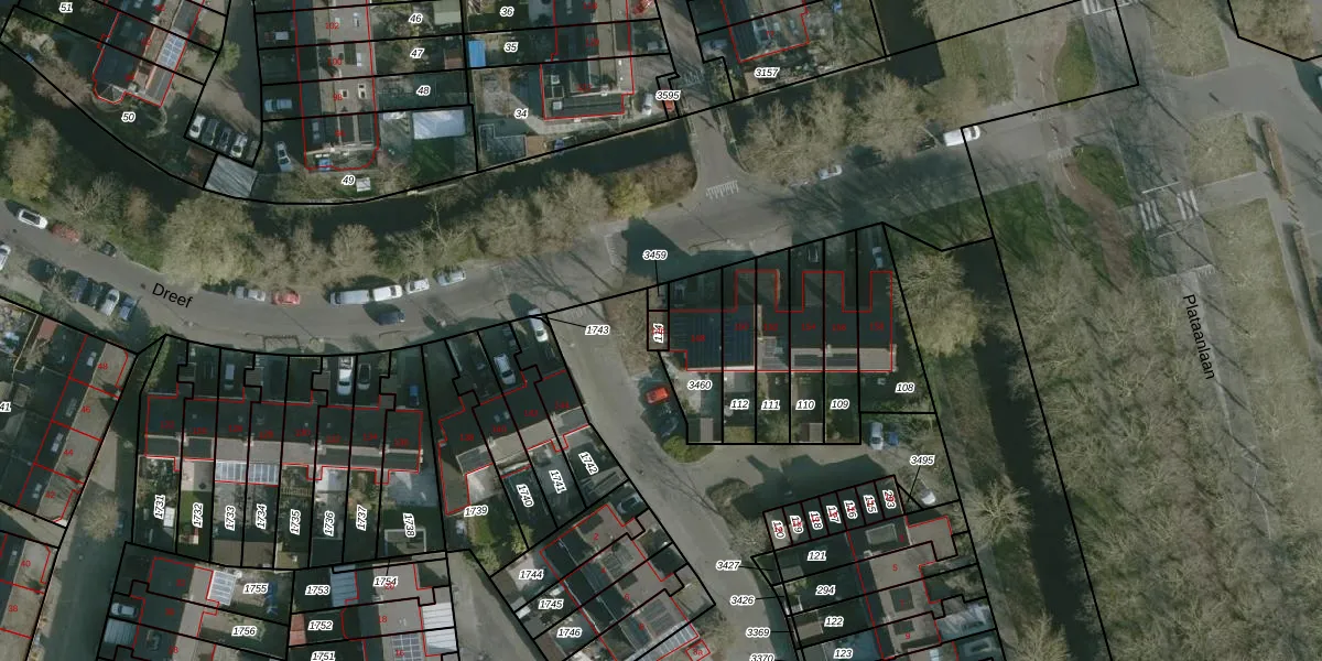 Gebruik de zoekbalk of klik op een perceel voor informatie over de adressen binnen dit perceel.