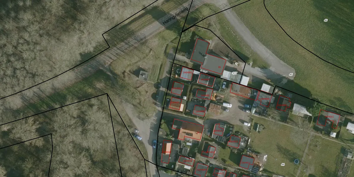 Duinweg 24-H002 is gelegen op kadastraal perceel HLV01F44. Deze kadastrale aanduiding is uniek en wordt gebruikt door het Kadaster om eigendomsrechten en andere zakelijke rechten vast te leggen. Het perceel maakt onderdeel uit van de kadastrale gemeente Hellevoetsluis.