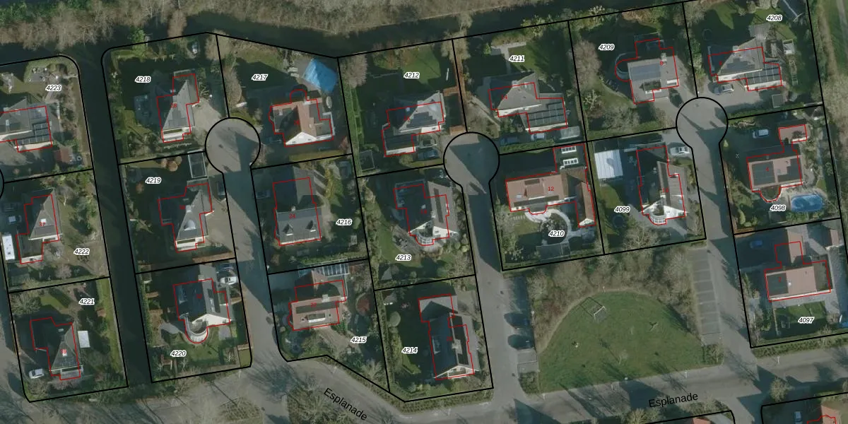 Het perceel waarop Esplanade 18 staat heeft een oppervlakte van 643 m². Dit is een groot perceel. De perceeloppervlakte wordt geregistreerd door het Kadaster. Gedetailleerde informatie over de maten van dit perceel kunt u vinden in het rapport Kadastrale kaart met maatvoering van Esplanade 18.