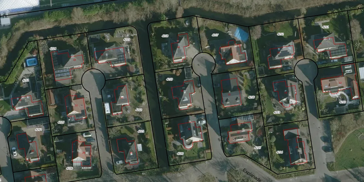 Het perceel waarop Esplanade 30 staat heeft een oppervlakte van 616 m². Dit is een groot perceel. De perceeloppervlakte wordt geregistreerd door het Kadaster. Gedetailleerde informatie over de maten van dit perceel kunt u vinden in het rapport Kadastrale kaart met maatvoering van Esplanade 30.