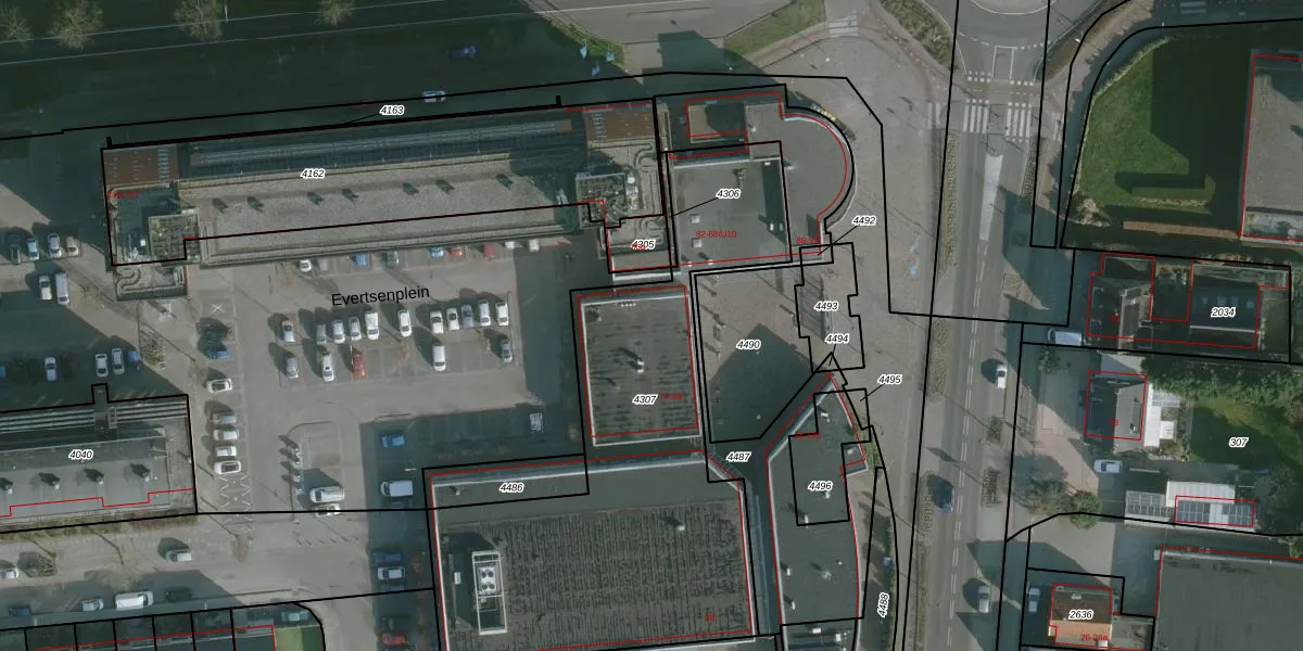 Het perceel waarop Evertsenplein 80-b staat heeft een oppervlakte van 2130 m². Dit is een zeer groot perceel. De perceeloppervlakte wordt geregistreerd door het Kadaster. Gedetailleerde informatie over de maten van dit perceel kunt u vinden in het rapport Kadastrale kaart met maatvoering van Evertsenplein 80-b.
