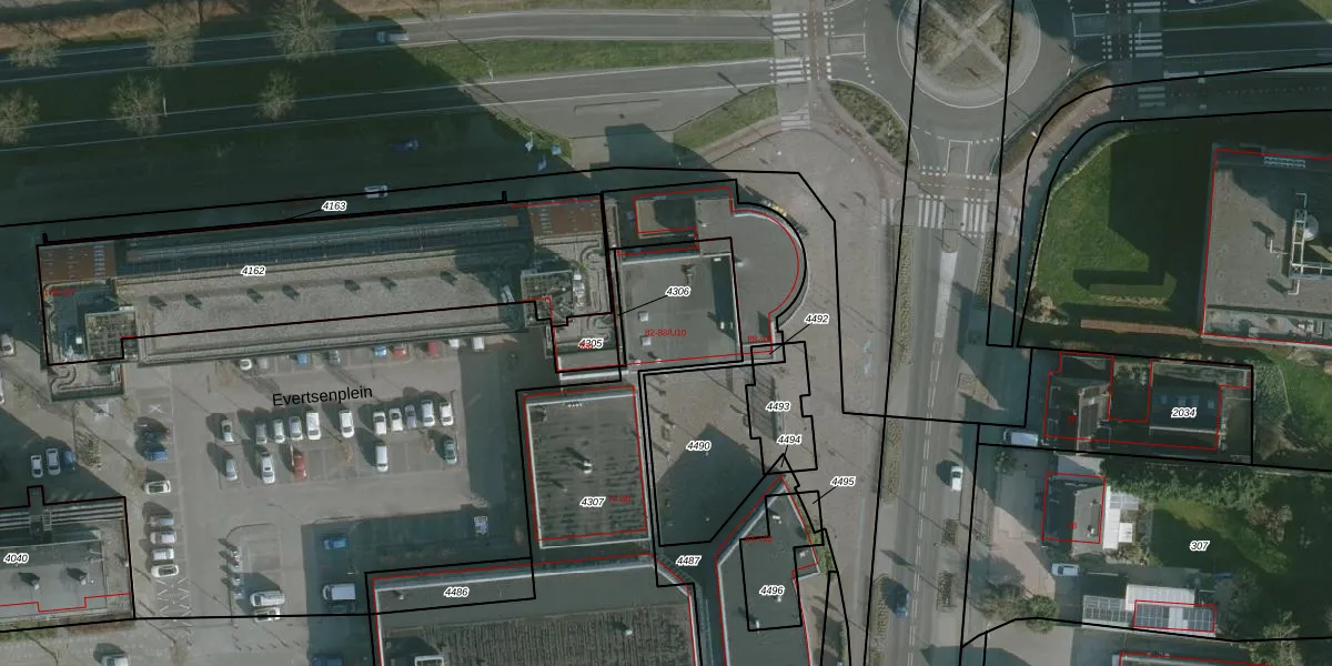 Evertsenplein 82 is gelegen op kadastraal perceel HLV01C4307. Deze kadastrale aanduiding is uniek en wordt gebruikt door het Kadaster om eigendomsrechten en andere zakelijke rechten vast te leggen. Het perceel maakt onderdeel uit van de kadastrale gemeente Hellevoetsluis.