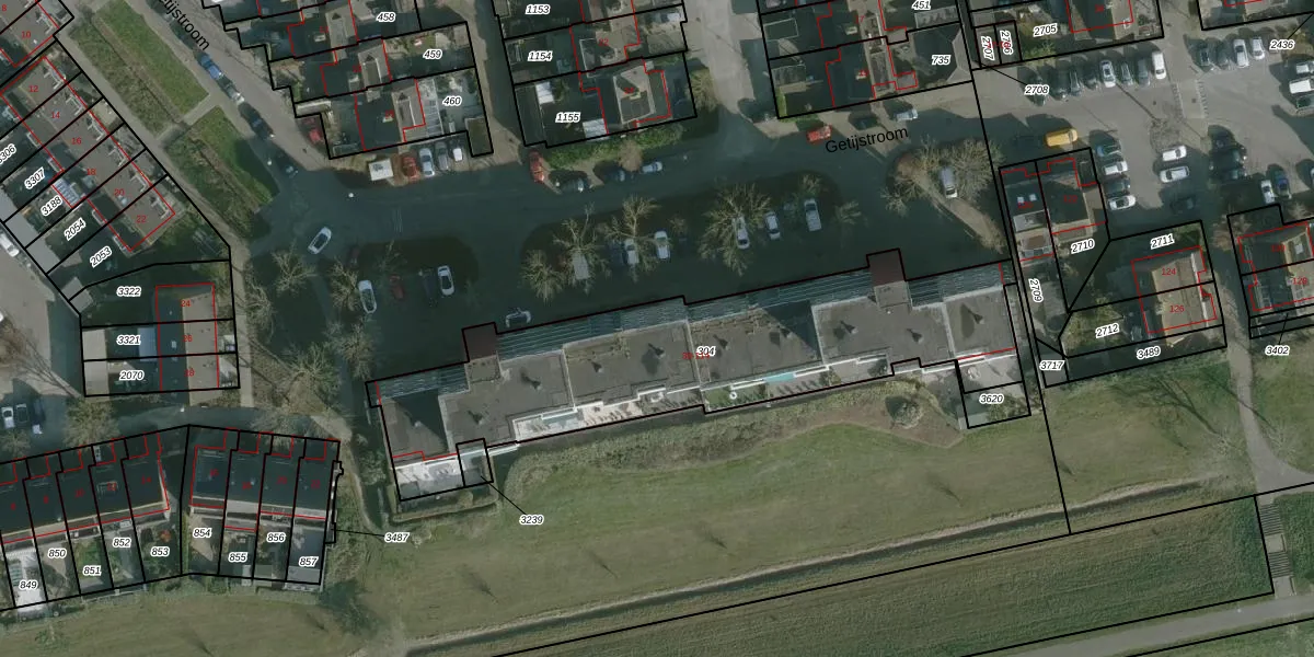 Het perceel waarop Getijstroom 44 staat heeft een oppervlakte van 1644 m². Dit is een zeer groot perceel. De perceeloppervlakte wordt geregistreerd door het Kadaster. Gedetailleerde informatie over de maten van dit perceel kunt u vinden in het rapport Kadastrale kaart met maatvoering van Getijstroom 44.