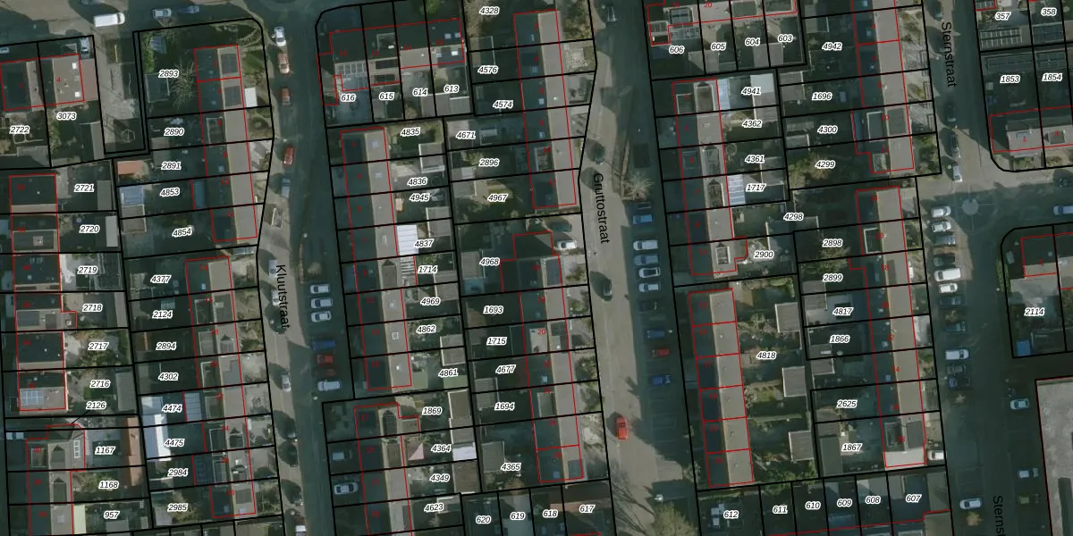 Het perceel waarop Gruttostraat 16 staat heeft een oppervlakte van 326 m². Dit is een groot perceel. De perceeloppervlakte wordt geregistreerd door het Kadaster. Gedetailleerde informatie over de maten van dit perceel kunt u vinden in het rapport Kadastrale kaart met maatvoering van Gruttostraat 16.