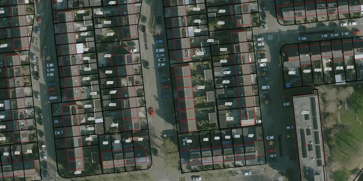 Gruttostraat 17 is gelegen op kadastraal perceel HLV01C4818. Deze kadastrale aanduiding is uniek en wordt gebruikt door het Kadaster om eigendomsrechten en andere zakelijke rechten vast te leggen. Het perceel maakt onderdeel uit van de kadastrale gemeente Hellevoetsluis.