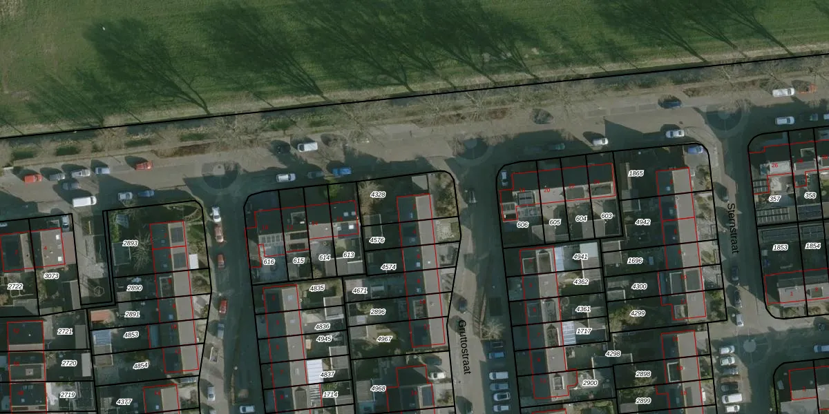 Het perceel waarop Gruttostraat 2 staat heeft een oppervlakte van 264 m². Dit is een middelgroot perceel. De perceeloppervlakte wordt geregistreerd door het Kadaster. Gedetailleerde informatie over de maten van dit perceel kunt u vinden in het rapport Kadastrale kaart met maatvoering van Gruttostraat 2.