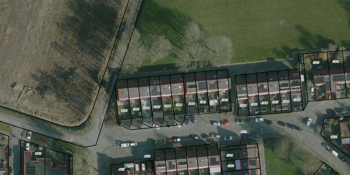 Het perceel waarop het adres ligt is HLV01-C-1899. De afkorting 'HLV01' staat voor kadastrale gemeente Hellevoetsluis. De gemiddelde perceelgrootte in Hellevoetsluis is 2832,86 m². Dit perceel is kleiner: de perceeloppervlakte bedraagt 195 m². De grootste perceeloppervlakte in de kadastrale gemeente is 7,30 km². De kleinste oppervlakte bedraagt 0 m². Op het perceel bevinden zich geen andere adressen. In de Basisregistratie Kadaster (BRK) werden de grenzen van het perceel geregistreerd op 19-05-2008.