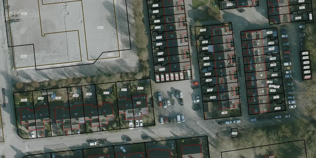 Handbalpad 1-a is gelegen op kadastraal perceel HLV01C2530. Deze kadastrale aanduiding is uniek en wordt gebruikt door het Kadaster om eigendomsrechten en andere zakelijke rechten vast te leggen. Het perceel maakt onderdeel uit van de kadastrale gemeente Hellevoetsluis.