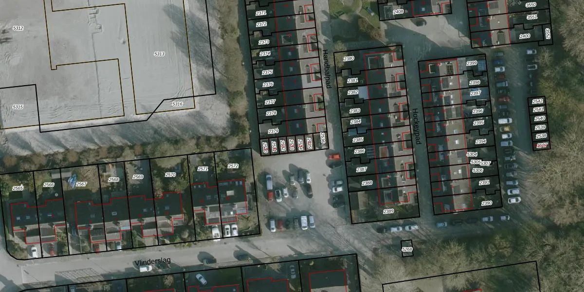 Handbalpad 1-d is gelegen op kadastraal perceel HLV01C2533. Deze kadastrale aanduiding is uniek en wordt gebruikt door het Kadaster om eigendomsrechten en andere zakelijke rechten vast te leggen. Het perceel maakt onderdeel uit van de kadastrale gemeente Hellevoetsluis.