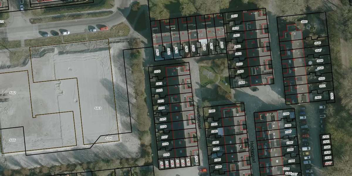 Het perceel waarop Handbalpad 17 staat heeft een oppervlakte van 118 m². Dit is een middelgroot perceel. De perceeloppervlakte wordt geregistreerd door het Kadaster. Gedetailleerde informatie over de maten van dit perceel kunt u vinden in het rapport Kadastrale kaart met maatvoering van Handbalpad 17.