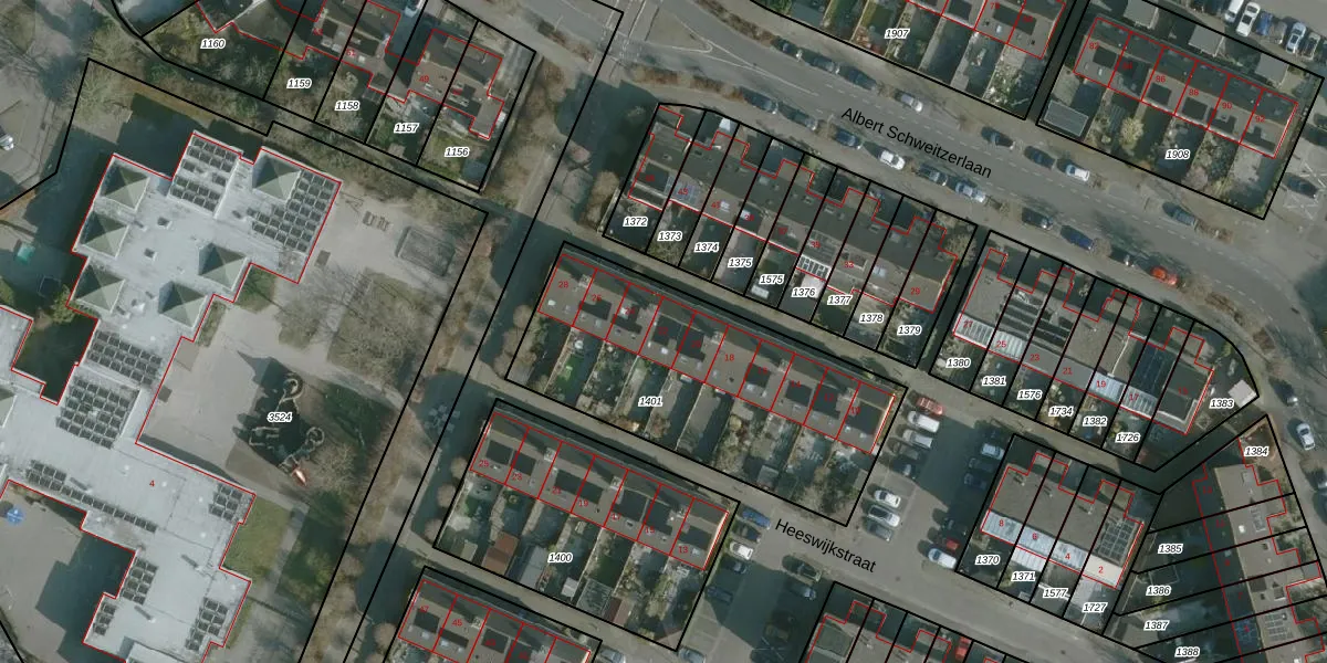 Het perceel waarop Heeswijkstraat 22 staat heeft een oppervlakte van 1277 m². Dit is een zeer groot perceel. De perceeloppervlakte wordt geregistreerd door het Kadaster. Gedetailleerde informatie over de maten van dit perceel kunt u vinden in het rapport Kadastrale kaart met maatvoering van Heeswijkstraat 22.