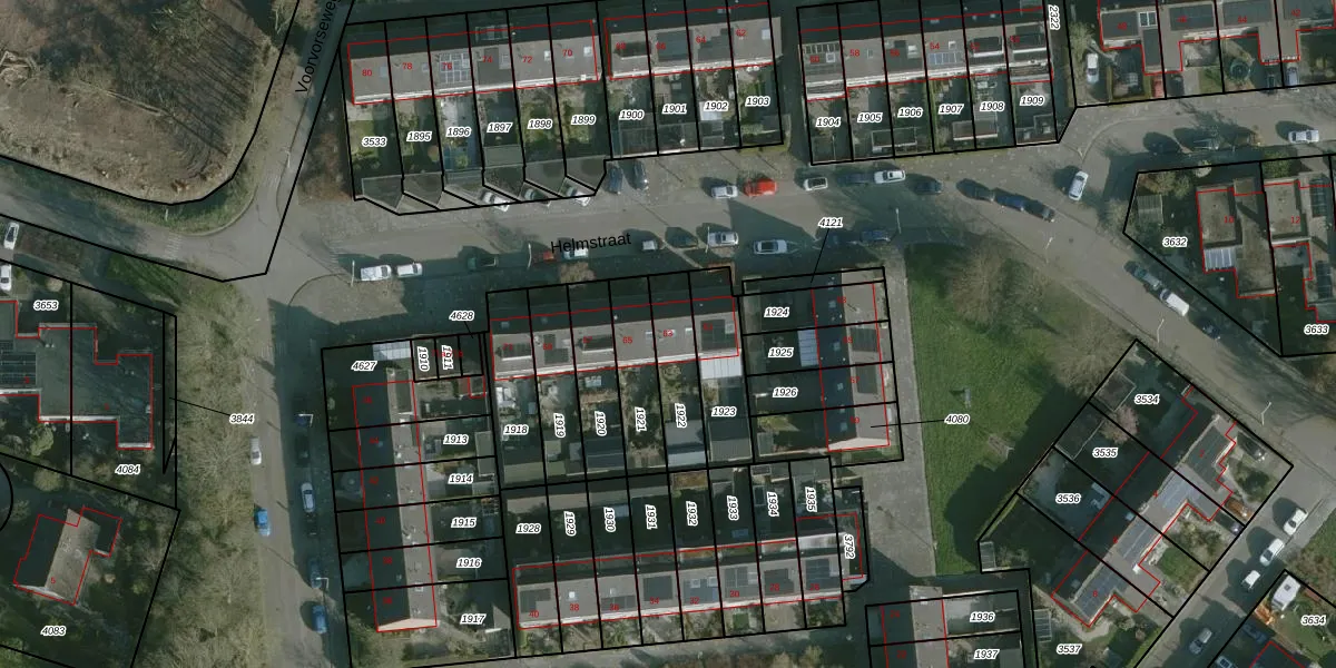 Het perceel waarop Helmstraat 63 staat heeft een oppervlakte van 182 m². Dit is een middelgroot perceel. De perceeloppervlakte wordt geregistreerd door het Kadaster. Gedetailleerde informatie over de maten van dit perceel kunt u vinden in het rapport Kadastrale kaart met maatvoering van Helmstraat 63.
