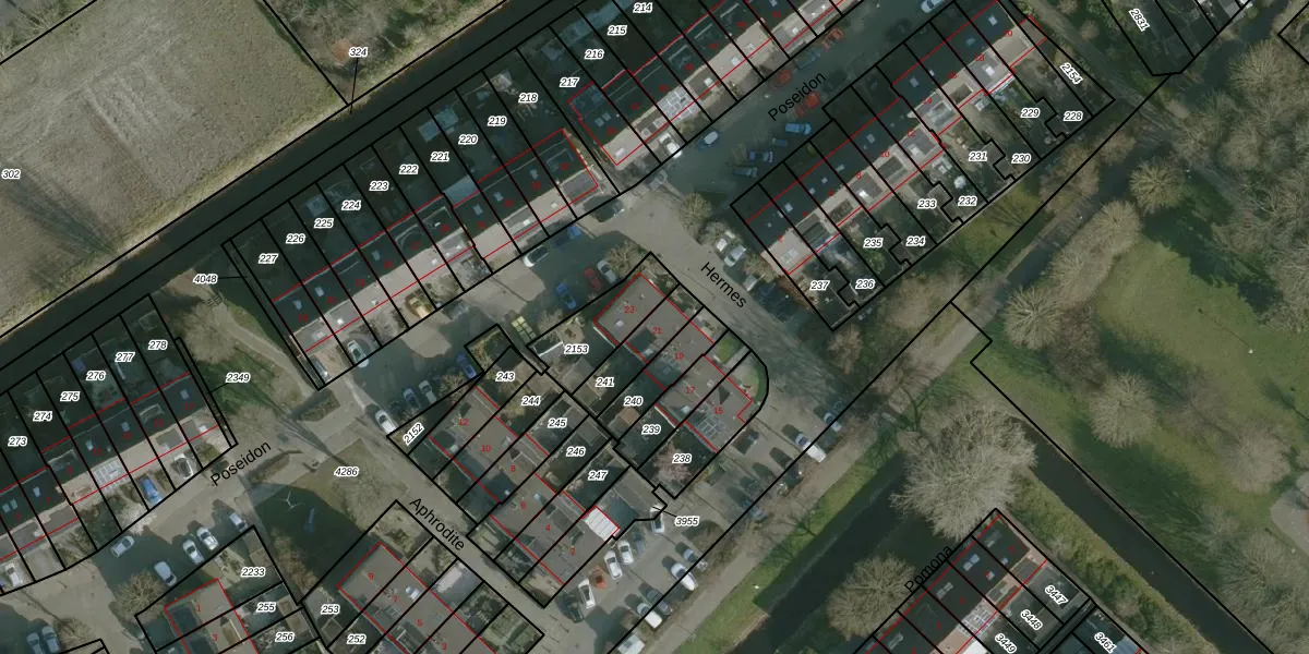 Het perceel waarop Hermes 21 staat heeft een oppervlakte van 122 m². Dit is een middelgroot perceel. De perceeloppervlakte wordt geregistreerd door het Kadaster. Gedetailleerde informatie over de maten van dit perceel kunt u vinden in het rapport Kadastrale kaart met maatvoering van Hermes 21.