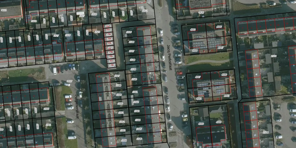 Jacq Perkstraat 13 is gelegen op kadastraal perceel HLV01C1540. Deze kadastrale aanduiding is uniek en wordt gebruikt door het Kadaster om eigendomsrechten en andere zakelijke rechten vast te leggen. Het perceel maakt onderdeel uit van de kadastrale gemeente Hellevoetsluis.