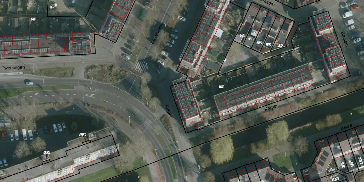 Het perceel waarop Karper 1 staat heeft een oppervlakte van 3660 m². Dit is een zeer groot perceel. De perceeloppervlakte wordt geregistreerd door het Kadaster. Gedetailleerde informatie over de maten van dit perceel kunt u vinden in het rapport Kadastrale kaart met maatvoering van Karper 1.
