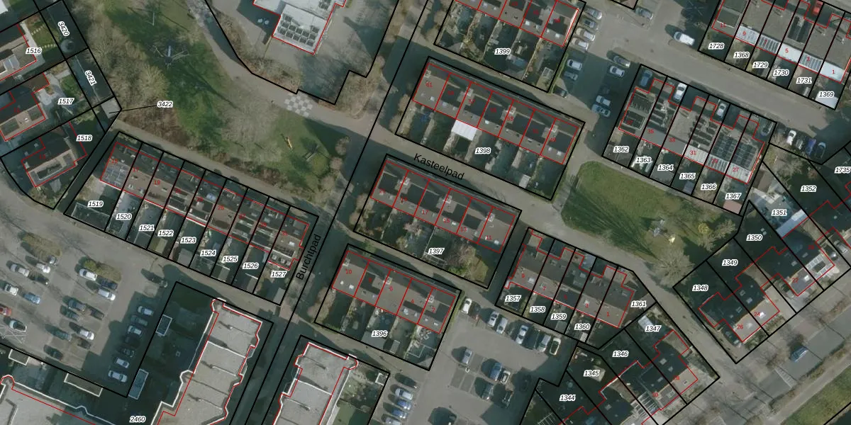 Het perceel waarop Kasteelpad 17 staat heeft een oppervlakte van 685 m². Dit is een groot perceel. De perceeloppervlakte wordt geregistreerd door het Kadaster. Gedetailleerde informatie over de maten van dit perceel kunt u vinden in het rapport Kadastrale kaart met maatvoering van Kasteelpad 17.