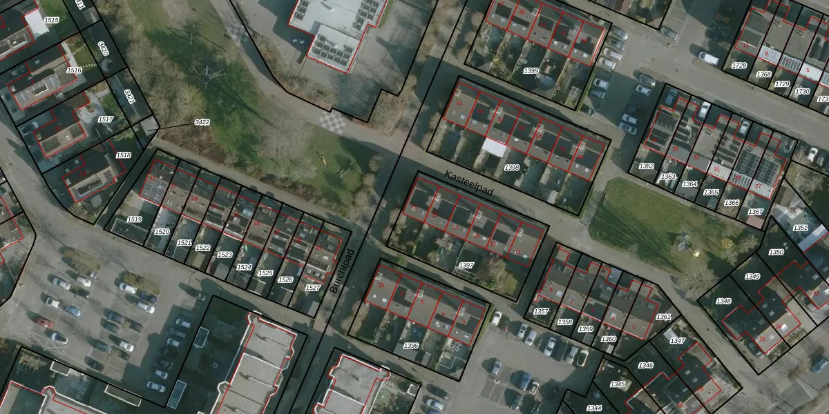 Het perceel waarop Kasteelpad 21 staat heeft een oppervlakte van 685 m². Dit is een groot perceel. De perceeloppervlakte wordt geregistreerd door het Kadaster. Gedetailleerde informatie over de maten van dit perceel kunt u vinden in het rapport Kadastrale kaart met maatvoering van Kasteelpad 21.