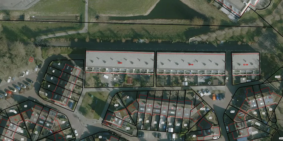 Het perceel waarop Korenaar 19 staat heeft een oppervlakte van 1260 m². Dit is een zeer groot perceel. De perceeloppervlakte wordt geregistreerd door het Kadaster. Gedetailleerde informatie over de maten van dit perceel kunt u vinden in het rapport Kadastrale kaart met maatvoering van Korenaar 19.