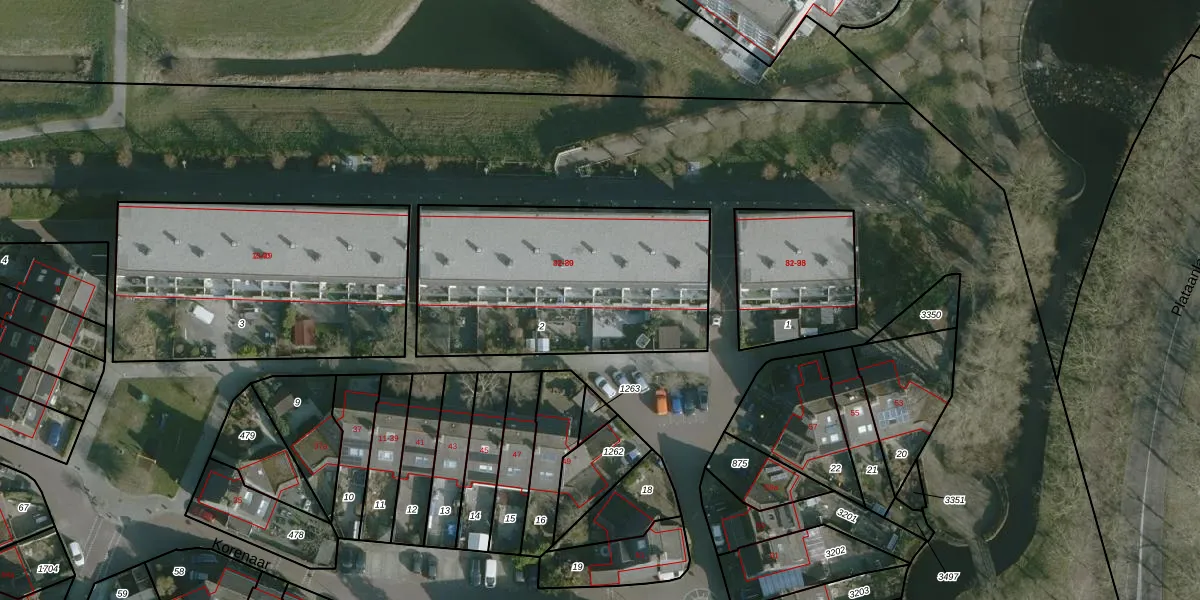 Het perceel waarop Korenaar 25 staat heeft een oppervlakte van 1188 m². Dit is een zeer groot perceel. De perceeloppervlakte wordt geregistreerd door het Kadaster. Gedetailleerde informatie over de maten van dit perceel kunt u vinden in het rapport Kadastrale kaart met maatvoering van Korenaar 25.