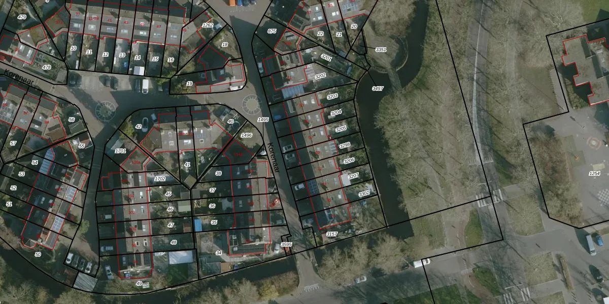 Het perceel waarop Korenaar 69 staat heeft een oppervlakte van 145 m². Dit is een middelgroot perceel. De perceeloppervlakte wordt geregistreerd door het Kadaster. Gedetailleerde informatie over de maten van dit perceel kunt u vinden in het rapport Kadastrale kaart met maatvoering van Korenaar 69.