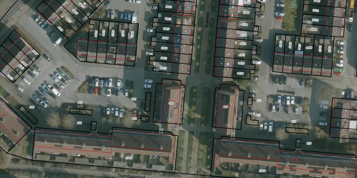 Het perceel waarop Kosmos 96 staat heeft een oppervlakte van 385 m². Dit is een groot perceel. De perceeloppervlakte wordt geregistreerd door het Kadaster. Gedetailleerde informatie over de maten van dit perceel kunt u vinden in het rapport Kadastrale kaart met maatvoering van Kosmos 96.