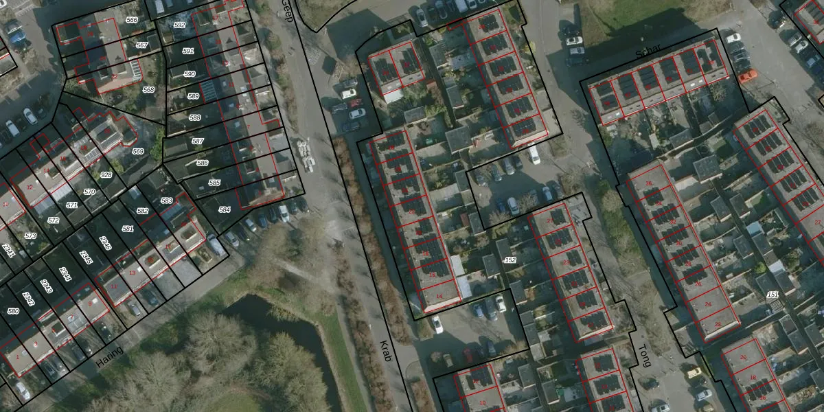 Het perceel waarop Krab 22 staat heeft een oppervlakte van 5270 m². Dit is een zeer groot perceel. De perceeloppervlakte wordt geregistreerd door het Kadaster. Gedetailleerde informatie over de maten van dit perceel kunt u vinden in het rapport Kadastrale kaart met maatvoering van Krab 22.