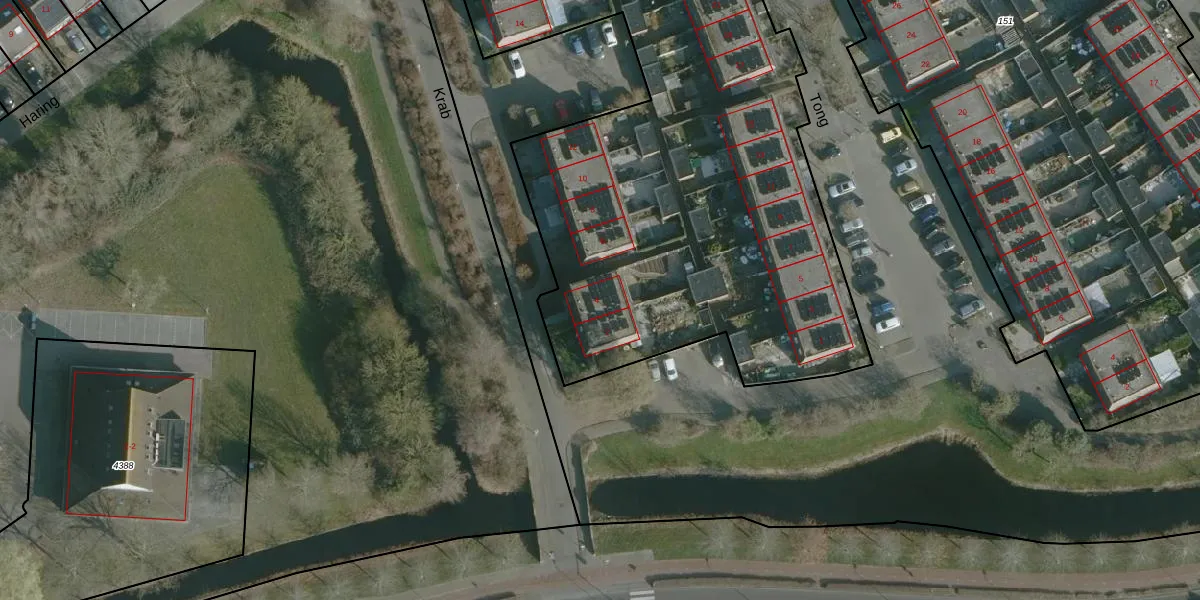 Het perceel waarop Krab 4 staat heeft een oppervlakte van 5270 m². Dit is een zeer groot perceel. De perceeloppervlakte wordt geregistreerd door het Kadaster. Gedetailleerde informatie over de maten van dit perceel kunt u vinden in het rapport Kadastrale kaart met maatvoering van Krab 4.