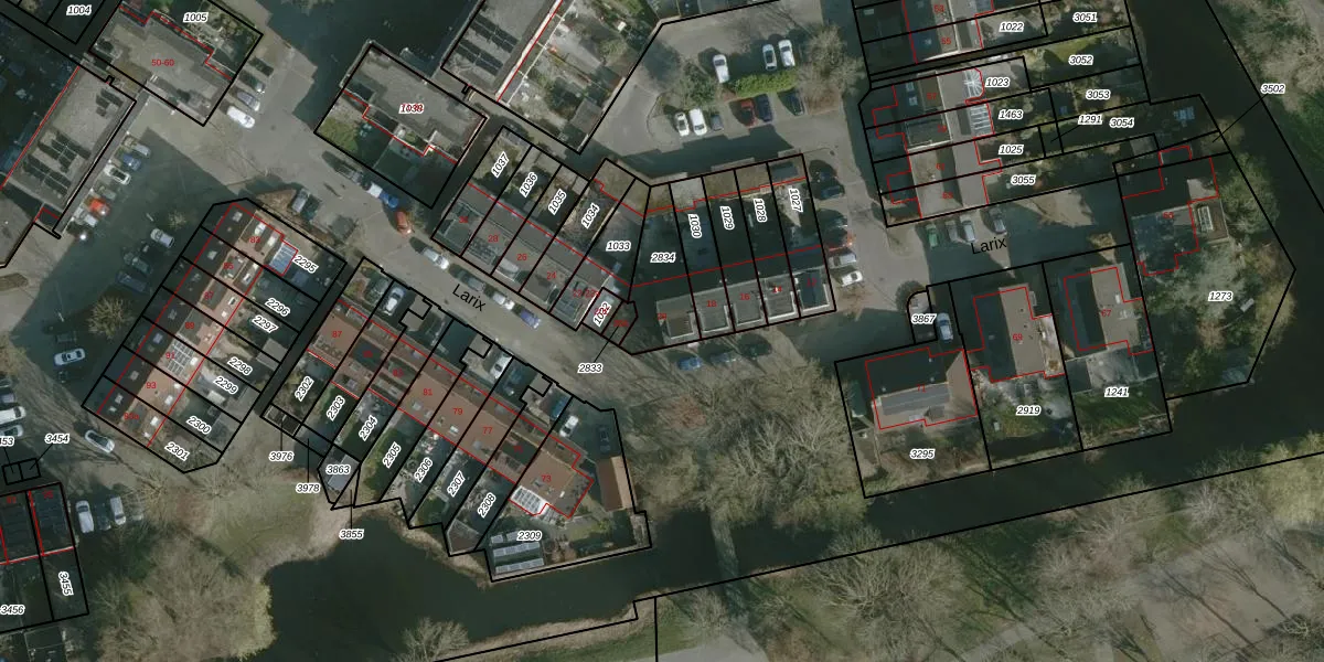 Het perceel waarop Larix 20 staat heeft een oppervlakte van 182 m². Dit is een middelgroot perceel. De perceeloppervlakte wordt geregistreerd door het Kadaster. Gedetailleerde informatie over de maten van dit perceel kunt u vinden in het rapport Kadastrale kaart met maatvoering van Larix 20.