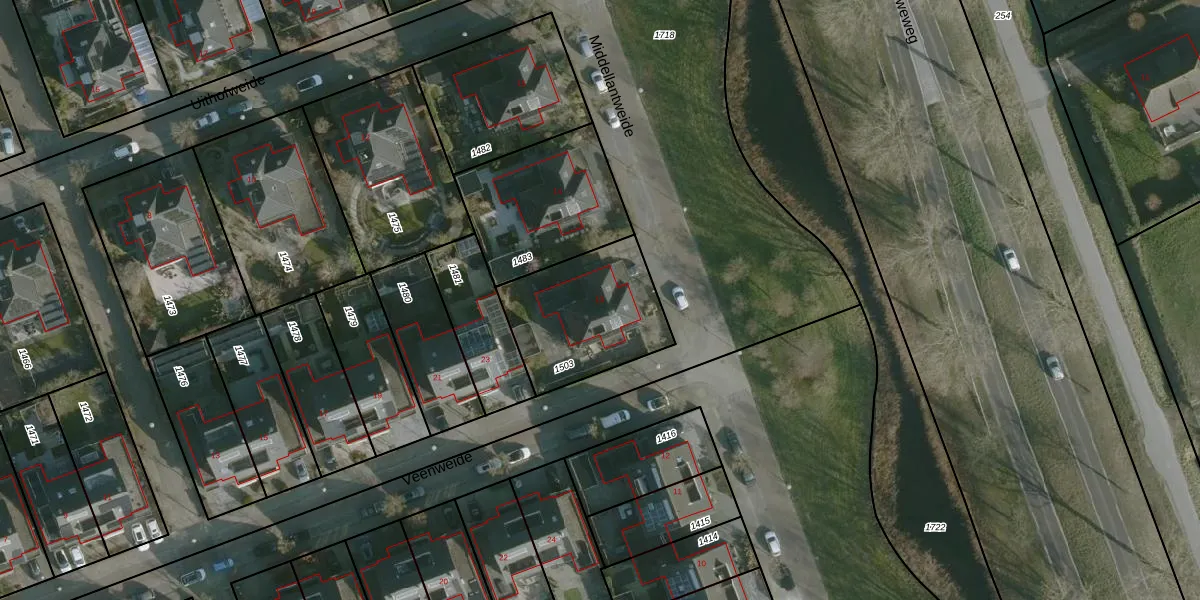 Het perceel waarop Middellantweide 13 staat heeft een oppervlakte van 485 m². Dit is een groot perceel. De perceeloppervlakte wordt geregistreerd door het Kadaster. Gedetailleerde informatie over de maten van dit perceel kunt u vinden in het rapport Kadastrale kaart met maatvoering van Middellantweide 13.