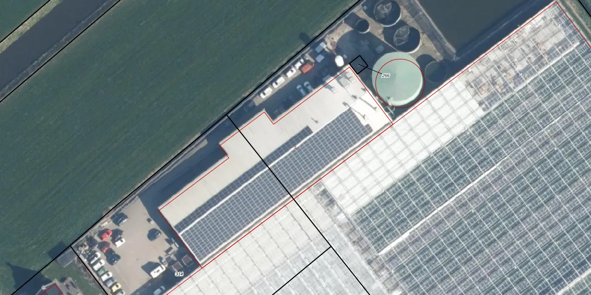 Het perceel waarop Middelweg 2 staat heeft een oppervlakte van 3,7 ha. Dit is een zeer groot perceel. De perceeloppervlakte wordt geregistreerd door het Kadaster. Gedetailleerde informatie over de maten van dit perceel kunt u vinden in het rapport Kadastrale kaart met maatvoering van Middelweg 2.
