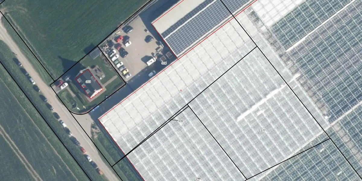 Het adres is gelegen op perceel 314 in de sectie K en de kadastrale gemeente Hellevoetsluis. De kadastrale aanduiding is aldus HLV01-K-314. De oppervlakte van het perceel is 5049 m². Dat is groter dan gemiddeld in Hellevoetsluis, waar de gemiddelde perceeloppervlakte op 2834,09 m² ligt. Het grootste perceel in de kadastrale gemeente is 7,30 km². Het kleinste perceel heeft een oppervlakte van 0 m². Dit is het enige adres dat aanwezig is op het perceel. In de Basisregistratie Kadaster (BRK) werden de grenzen van het perceel geregistreerd op 28-06-2017.