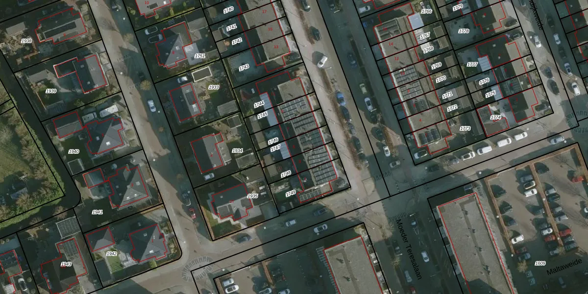 Moeder Teresalaan 5 is gelegen op kadastraal perceel HLV01H1747. Deze kadastrale aanduiding is uniek en wordt gebruikt door het Kadaster om eigendomsrechten en andere zakelijke rechten vast te leggen. Het perceel maakt onderdeel uit van de kadastrale gemeente Hellevoetsluis.