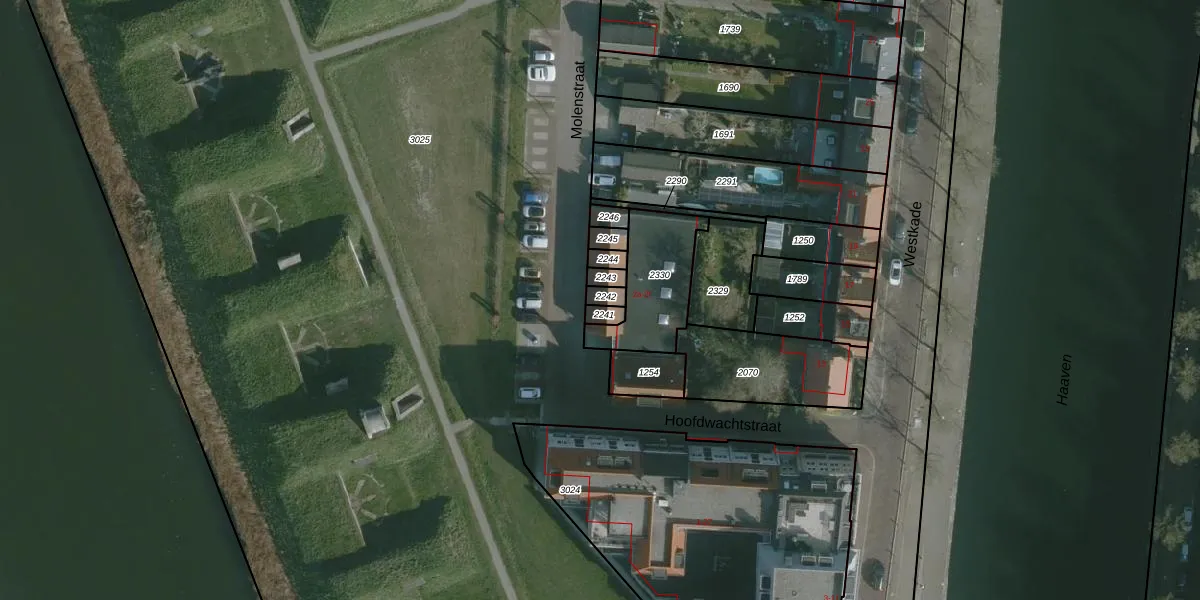 Molenstraat 2-b is gelegen op kadastraal perceel HLV01A2242. Deze kadastrale aanduiding is uniek en wordt gebruikt door het Kadaster om eigendomsrechten en andere zakelijke rechten vast te leggen. Het perceel maakt onderdeel uit van de kadastrale gemeente Hellevoetsluis.
