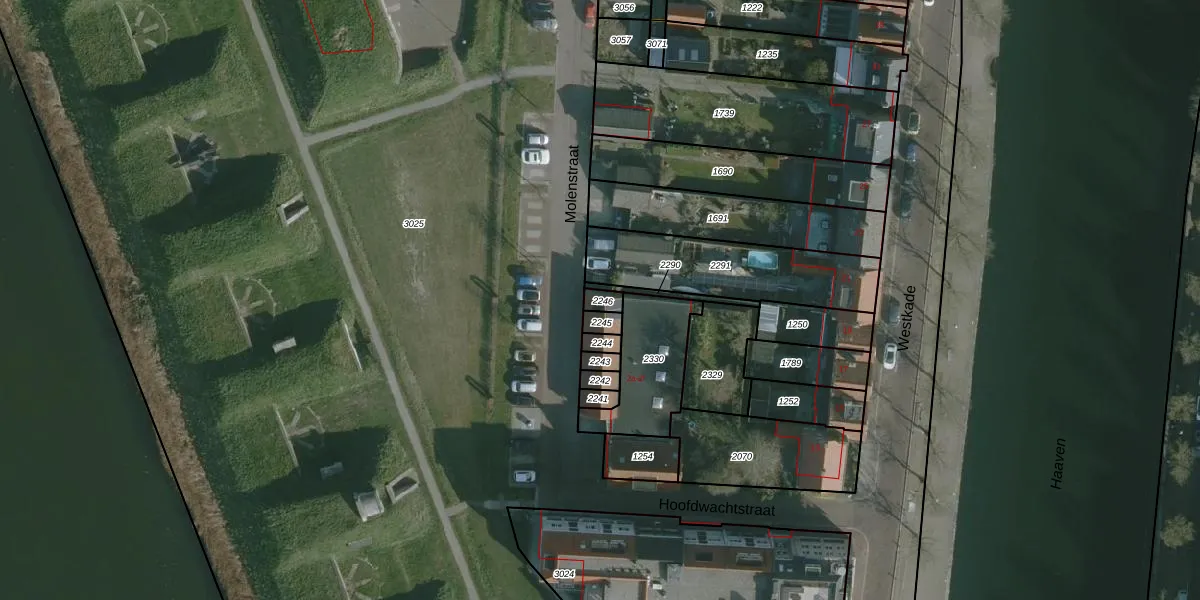 Het perceel waarop Molenstraat 2-f staat heeft een oppervlakte van 24 m². Dit is een klein perceel. De perceeloppervlakte wordt geregistreerd door het Kadaster. Gedetailleerde informatie over de maten van dit perceel kunt u vinden in het rapport Kadastrale kaart met maatvoering van Molenstraat 2-f.
