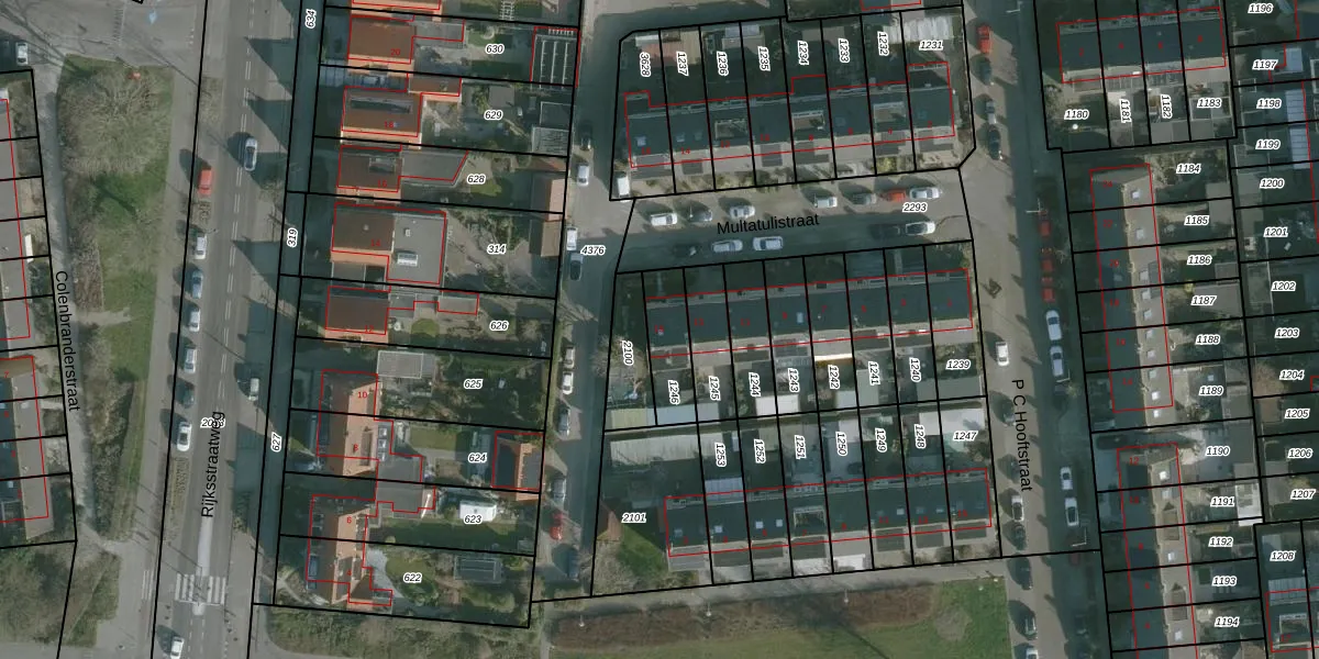 Het perceel waarop Multatulistraat 15 staat heeft een oppervlakte van 148 m². Dit is een middelgroot perceel. De perceeloppervlakte wordt geregistreerd door het Kadaster. Gedetailleerde informatie over de maten van dit perceel kunt u vinden in het rapport Kadastrale kaart met maatvoering van Multatulistraat 15.