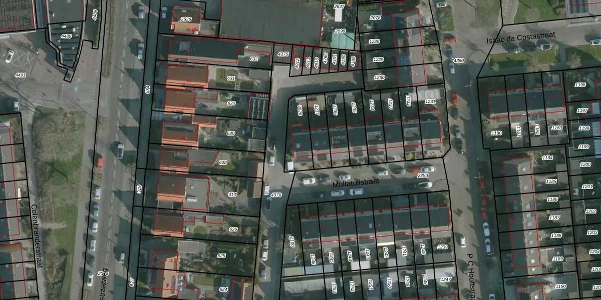 Het perceel waarop Multatulistraat 16 staat heeft een oppervlakte van 204 m². Dit is een middelgroot perceel. De perceeloppervlakte wordt geregistreerd door het Kadaster. Gedetailleerde informatie over de maten van dit perceel kunt u vinden in het rapport Kadastrale kaart met maatvoering van Multatulistraat 16.