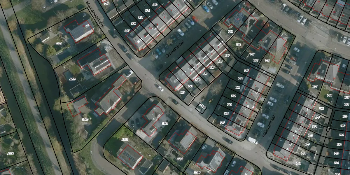 Het perceel waarop Octaafstraat 13 staat heeft een oppervlakte van 165 m². Dit is een middelgroot perceel. De perceeloppervlakte wordt geregistreerd door het Kadaster. Gedetailleerde informatie over de maten van dit perceel kunt u vinden in het rapport Kadastrale kaart met maatvoering van Octaafstraat 13.