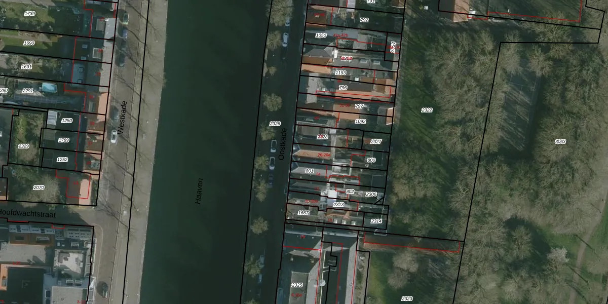 Het perceel waarop Oostkade 26-a staat heeft een oppervlakte van 195 m². Dit is een middelgroot perceel. De perceeloppervlakte wordt geregistreerd door het Kadaster. Gedetailleerde informatie over de maten van dit perceel kunt u vinden in het rapport Kadastrale kaart met maatvoering van Oostkade 26-a.