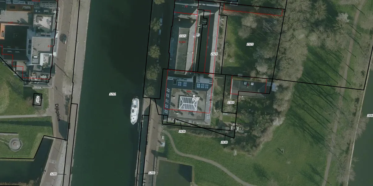 Het perceel waarop Oostkade 6-v staat heeft een oppervlakte van 1036 m². Dit is een zeer groot perceel. De perceeloppervlakte wordt geregistreerd door het Kadaster. Gedetailleerde informatie over de maten van dit perceel kunt u vinden in het rapport Kadastrale kaart met maatvoering van Oostkade 6-v.