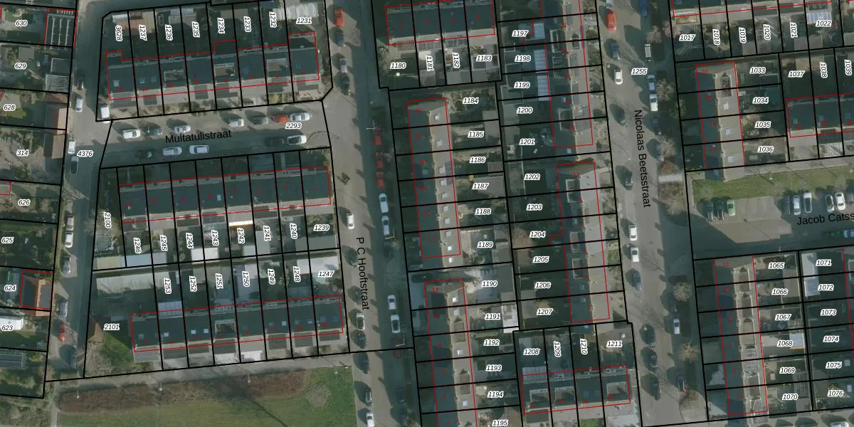 Het perceel waarop P C Hooftstraat 16 staat heeft een oppervlakte van 153 m². Dit is een middelgroot perceel. De perceeloppervlakte wordt geregistreerd door het Kadaster. Gedetailleerde informatie over de maten van dit perceel kunt u vinden in het rapport Kadastrale kaart met maatvoering van P C Hooftstraat 16.