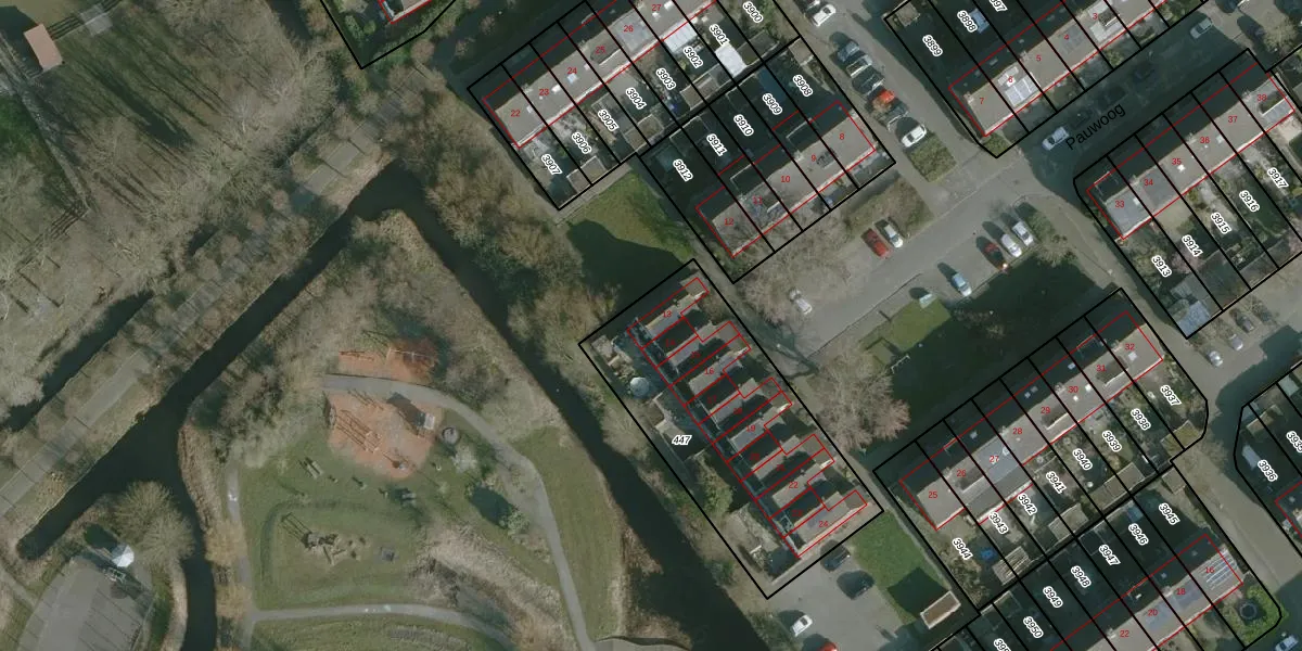 Pauwoog 13 is gelegen op kadastraal perceel HLV01G447. Deze kadastrale aanduiding is uniek en wordt gebruikt door het Kadaster om eigendomsrechten en andere zakelijke rechten vast te leggen. Het perceel maakt onderdeel uit van de kadastrale gemeente Hellevoetsluis.
