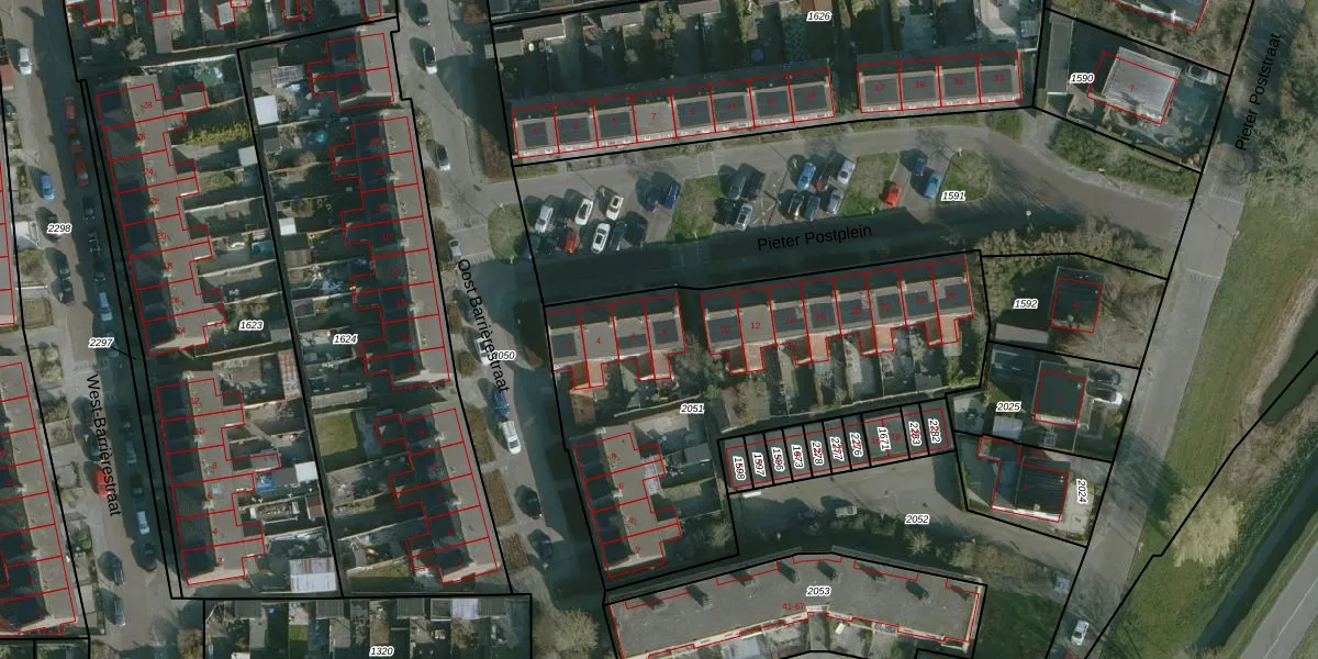 Het perceel waarop Pieter Postplein 8 staat heeft een oppervlakte van 1892 m². Dit is een zeer groot perceel. De perceeloppervlakte wordt geregistreerd door het Kadaster. Gedetailleerde informatie over de maten van dit perceel kunt u vinden in het rapport Kadastrale kaart met maatvoering van Pieter Postplein 8.