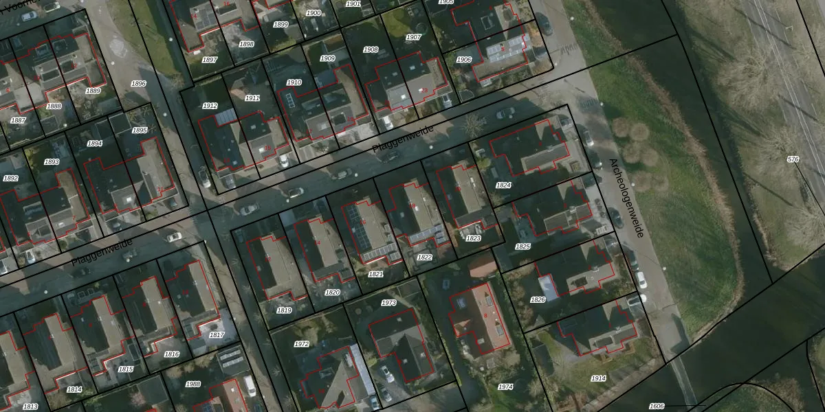 Plaggenweide 18 is gelegen op kadastraal perceel HLV01H1822. Deze kadastrale aanduiding is uniek en wordt gebruikt door het Kadaster om eigendomsrechten en andere zakelijke rechten vast te leggen. Het perceel maakt onderdeel uit van de kadastrale gemeente Hellevoetsluis.