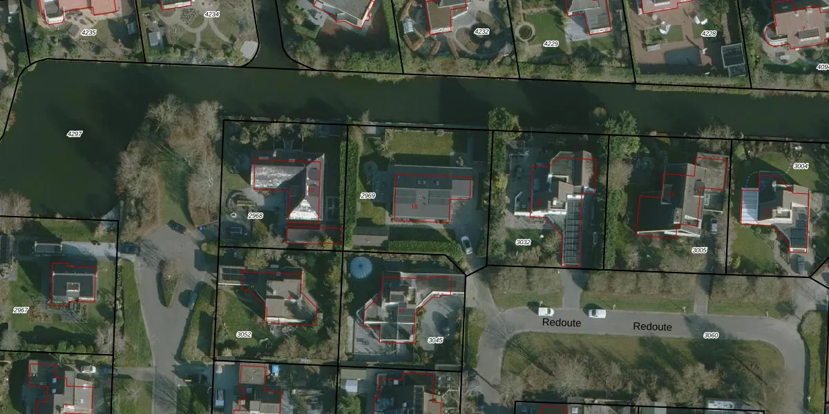 Het perceel waarop Redoute 18 staat heeft een oppervlakte van 1093 m². Dit is een zeer groot perceel. De perceeloppervlakte wordt geregistreerd door het Kadaster. Gedetailleerde informatie over de maten van dit perceel kunt u vinden in het rapport Kadastrale kaart met maatvoering van Redoute 18.