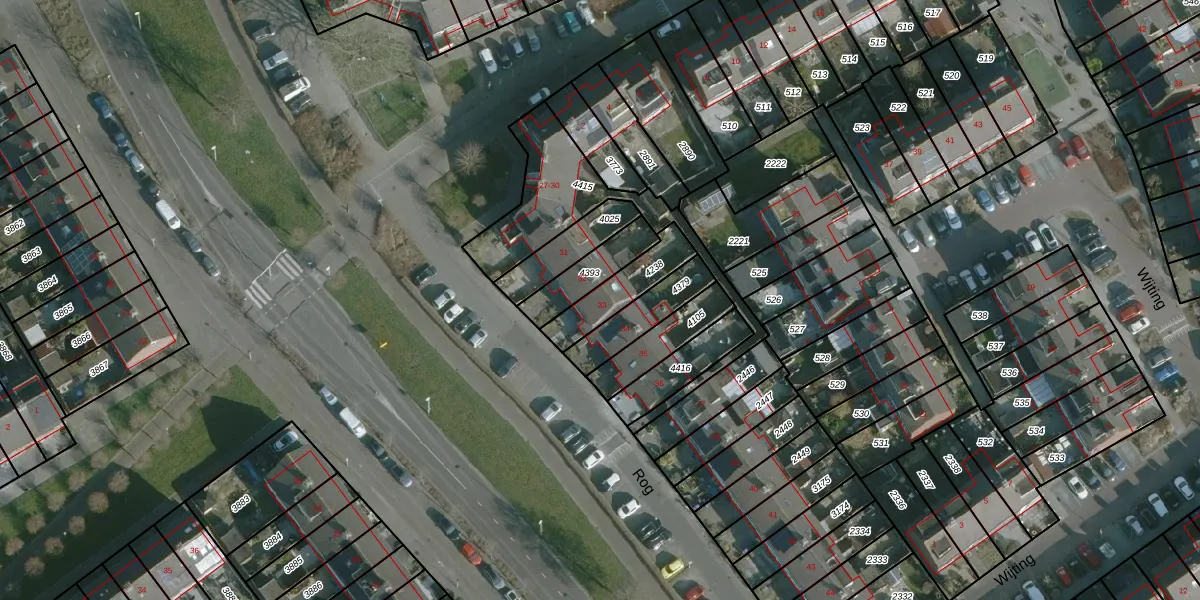 Het perceel waarop Rog 33 staat heeft een oppervlakte van 160 m². Dit is een middelgroot perceel. De perceeloppervlakte wordt geregistreerd door het Kadaster. Gedetailleerde informatie over de maten van dit perceel kunt u vinden in het rapport Kadastrale kaart met maatvoering van Rog 33.