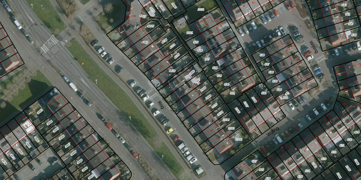 Het perceel waarop Rog 38 staat heeft een oppervlakte van 142 m². Dit is een middelgroot perceel. De perceeloppervlakte wordt geregistreerd door het Kadaster. Gedetailleerde informatie over de maten van dit perceel kunt u vinden in het rapport Kadastrale kaart met maatvoering van Rog 38.