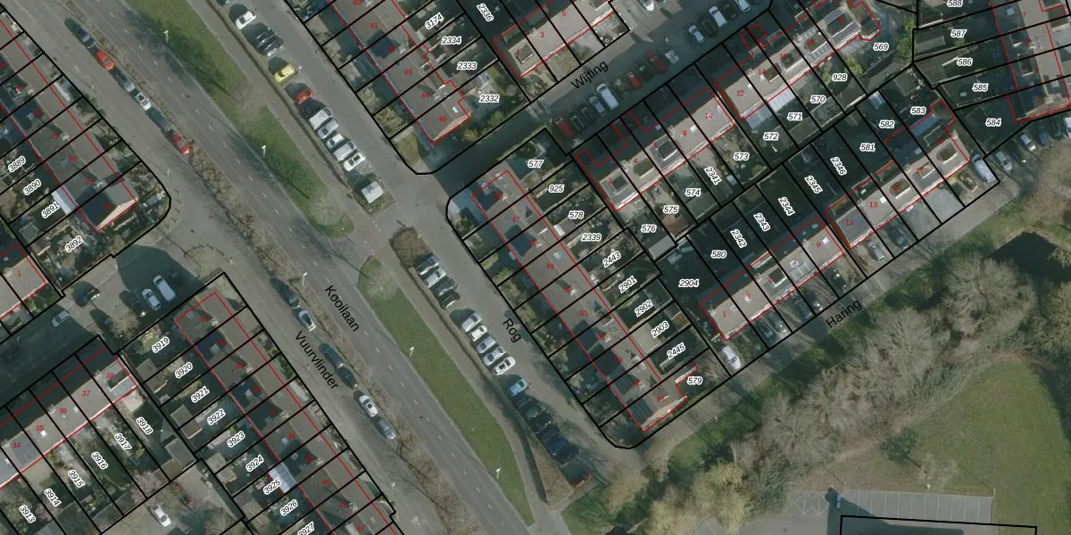 Gebruik de zoekbalk of klik op een perceel voor informatie over de adressen binnen dit perceel.